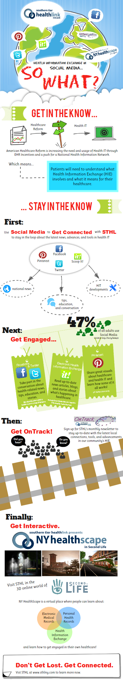 Click on the buttons below to check out some of the STHL Infographics created to help you learn more about your local Regional Health Information Organization (RHIO) and Health Information Exchange (HIE)!